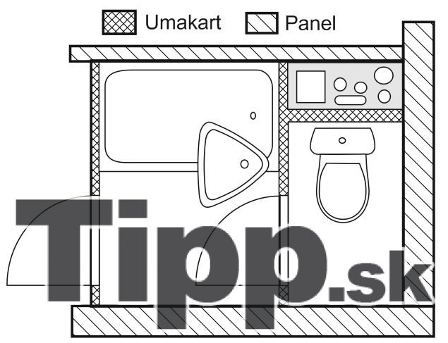 - Praktické riešenie je premiestniť vaňu/sprchovací kút na miesto WC, vďaka čomu aj pračku vieme premiestniť do kúpeľne